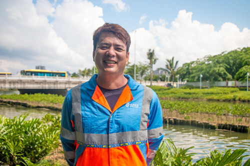 吕志强是海南分公司海口京兰公司水域中心的美舍河段长,自海口开展水体治理工作以来,他就带领着段内的班组人守护美舍河的卫生环境。如今,河道变美了,河流沿岸的居民和商家环保意识也提高了,这让他感到非常欣慰,带领着团队在高温作业也不言苦累。“美舍河保持着洁净靓丽的面貌,体现出了我们环卫工作的价值,工作虽简单,可要保持不忘初心,地守护好美舍河却不简单。”吕志强说道。